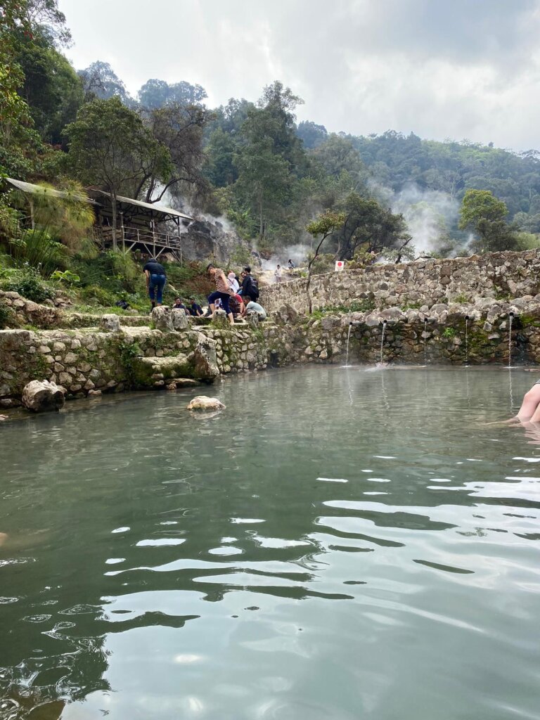 We zijn ook nog naar hotsprings geweest. Dit was niet super speciaal, het water was heel heel hot. We konden gaan zwemmen, maar werden geadviseerd om dan een shirt aan te doen. “Want Indonesië heeft meer Marco Borsato’s en Ali B’s “volgens de tourguide. Aangezien we al doorhadden hoe erg we werden bekeken hebben we gekozen om lekker met onze voeten erin te gaan. Bij de hotsprings was een hangende brug. Deze ging over een vallei, super mooi natuurlijk. Ik dacht dat doe ik wel even, maar het was dood eng. De brug was op 80m hoogte, en wiebelde. Ik was dus al redelijk bang en wilde zo snel mogelijk naar de overkant. Helaas werden we meerdere keren door Aziaten tegengehouden omdat ze per see op de foto wilden. Dit ging me wat te ver en volgens de guide was het dan ook goed om geen ja te zeggen op deze plek. Het laatste tripje van de dag was een aardbeien plantage. Dit was een hele leuke kleine plantage waar we een smoothie kregen en nog even hebben gedanst met wat Indonesiërs op Links, Rechts van Snollebollekes, Kedeng kedeng en nog veel meer.