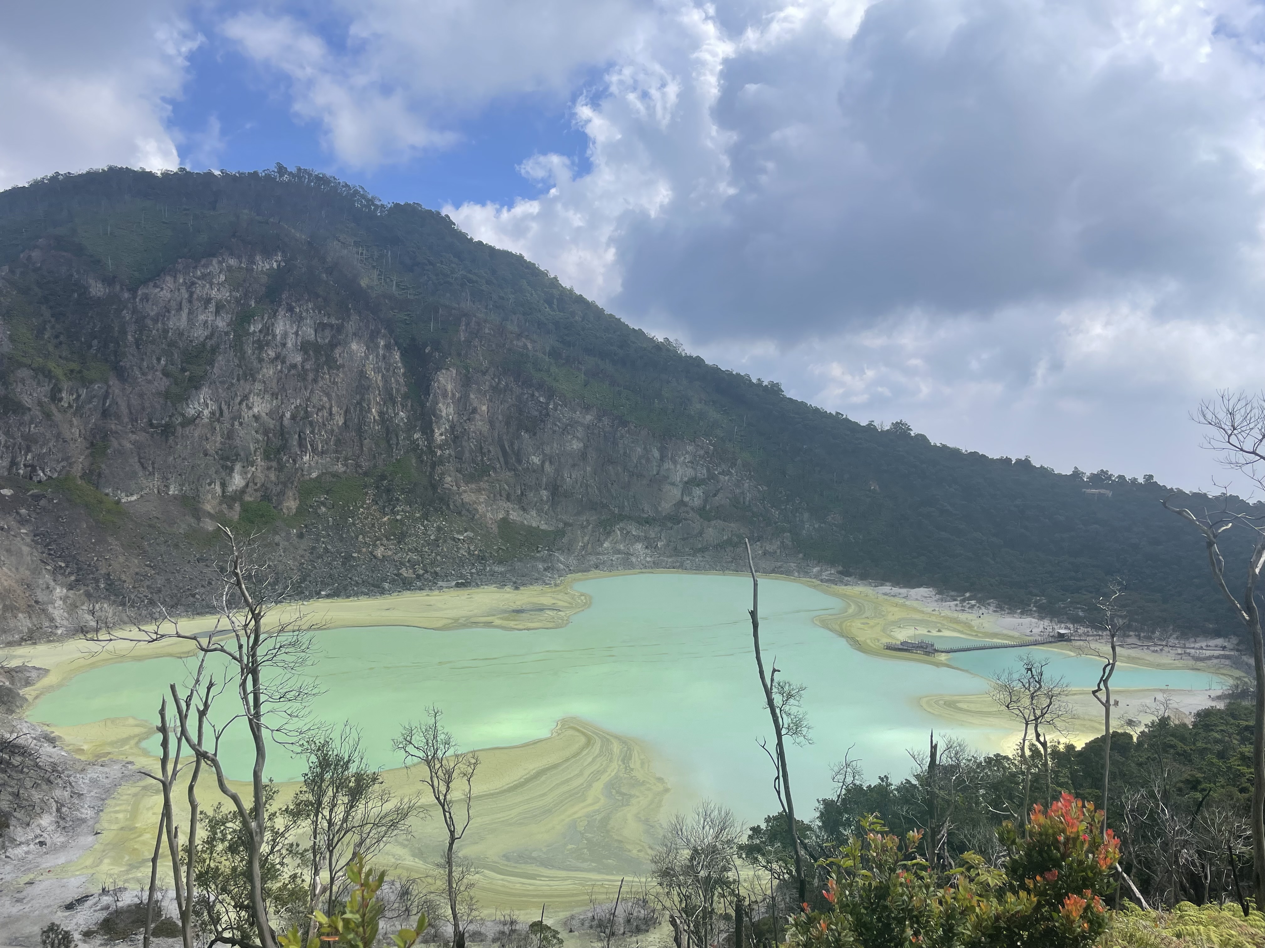 Deze dag begon met een bezoek aan Kawah Putih, dit is een vulkaan waar na de laatste uitbarsting een krater meer is ontstaan. Dit was super gaaf om te zien, door de witte kleur die ontstaan is vanwege de hoeveelheid zwavel. De krater wordt daarom ‘white crater’ genoemd. Buiten dat het mooi was , was het ook redelijk intens omdat de geur van de zwavel echt niet te harden was.