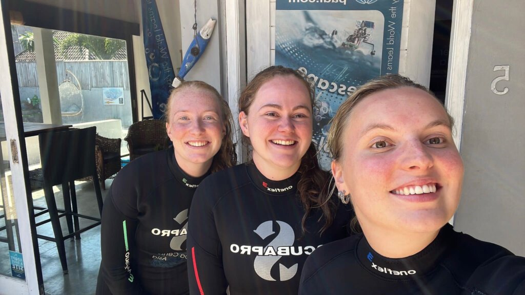Dinsdag gingen we naar Lembognan voor de duikcursus. De eerste dag hebben we gedoken in het zwembad en alle skills geleerd. Dit ging best goed!