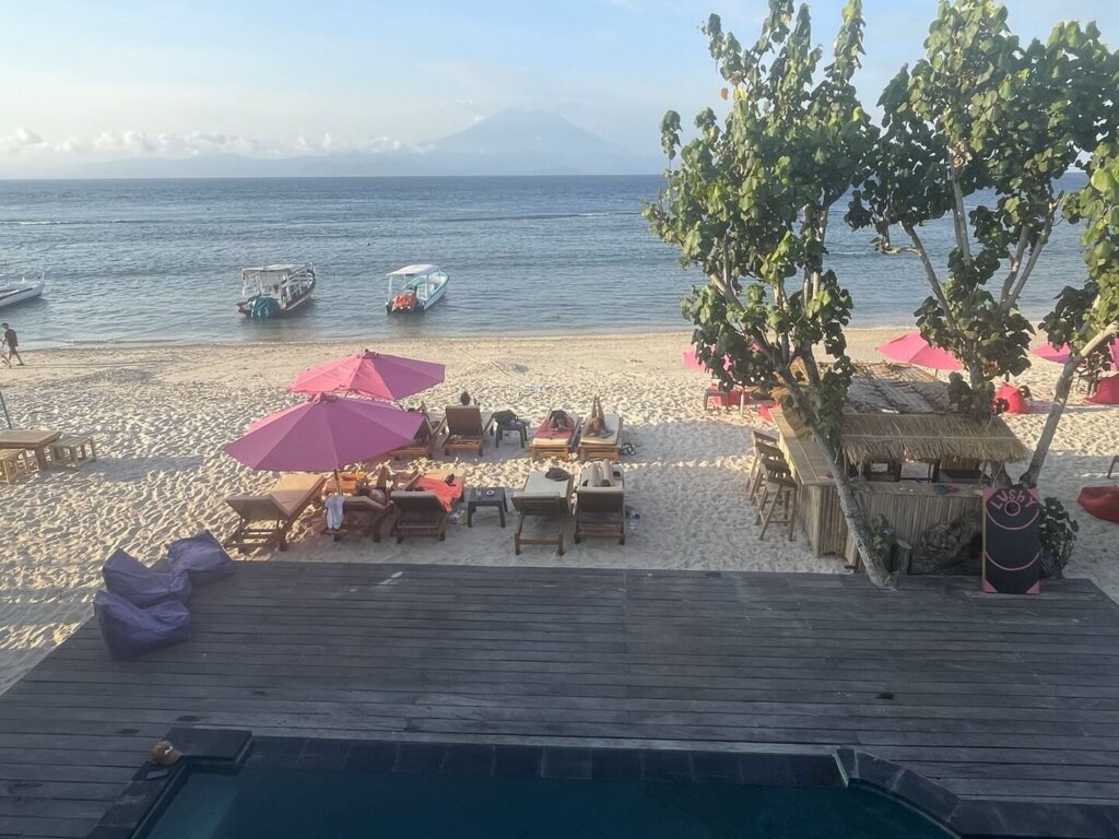 We kwamen hier afgelopen zaterdag aan, helaas merkte ik zaterdag avond dat ik me niet zo lekker voelde. Een vervelende nacht volgde met koorts, keelpijn, enzovoort. Ik had dus een lekker Aziatisch virusje te pakken! Het gevolg was dat ik drie dagen niks waard was en ik echt heb moeten uitrusten. Helaas dus niets van Nusa Penida kunnen zien, behalve het hostel. Gelukkig was het geen straf om hier onder m’n parasolletje uit te zieken!