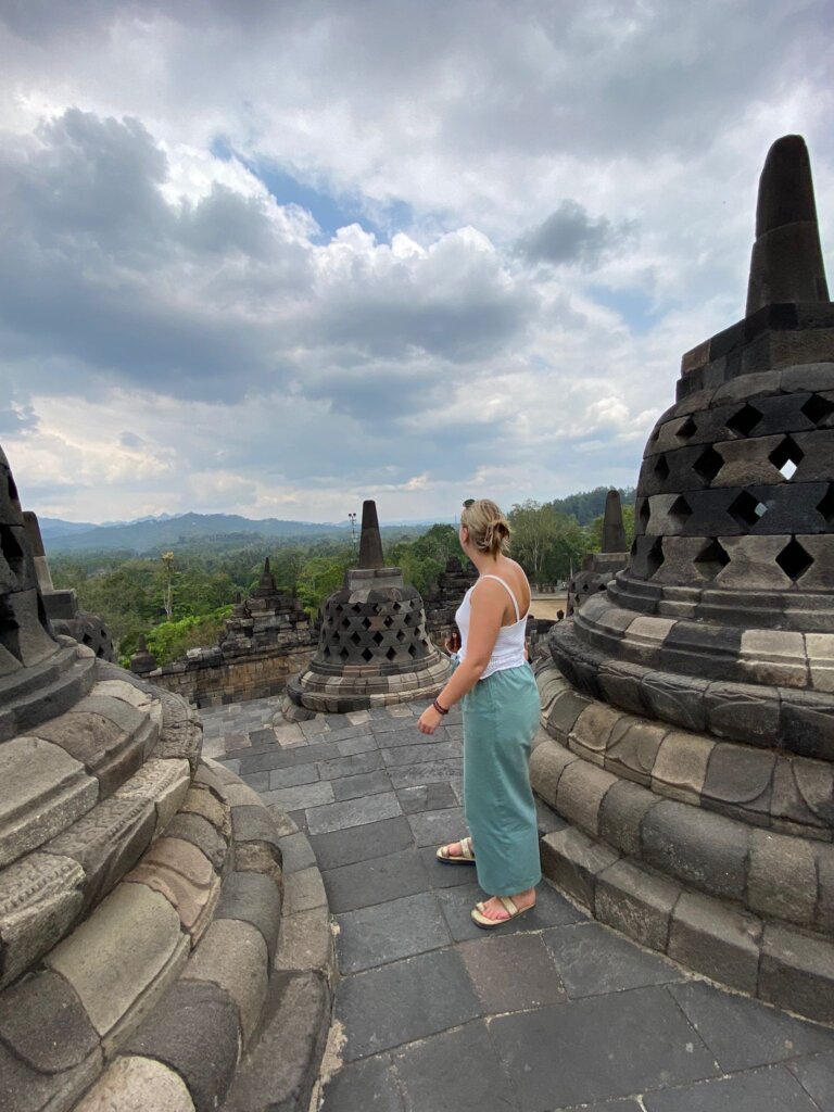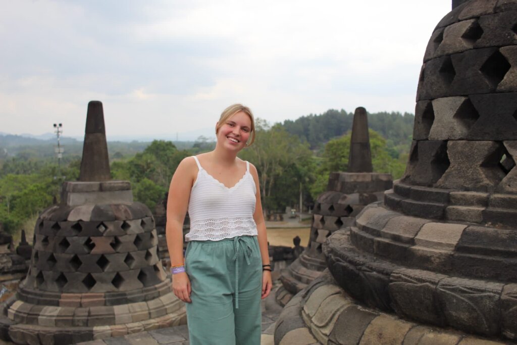 Gisteren zijn we naar Borobodur geweest, een Boeddhistische tempel. Dit was een mega grote tempel, die gebouwd is in 750 na Christus. Hij is gebouwd op een heuvel en heeft 10 verdiepingen. Ik vond het een mooie tempel, maar merkte wel dat ik Prambanan interessanter vond. In de avond hebben we een kook cursus gedaan, hier gingen we Gado Gado en een vis saté maken. Dit was super lekker en heel leuk!