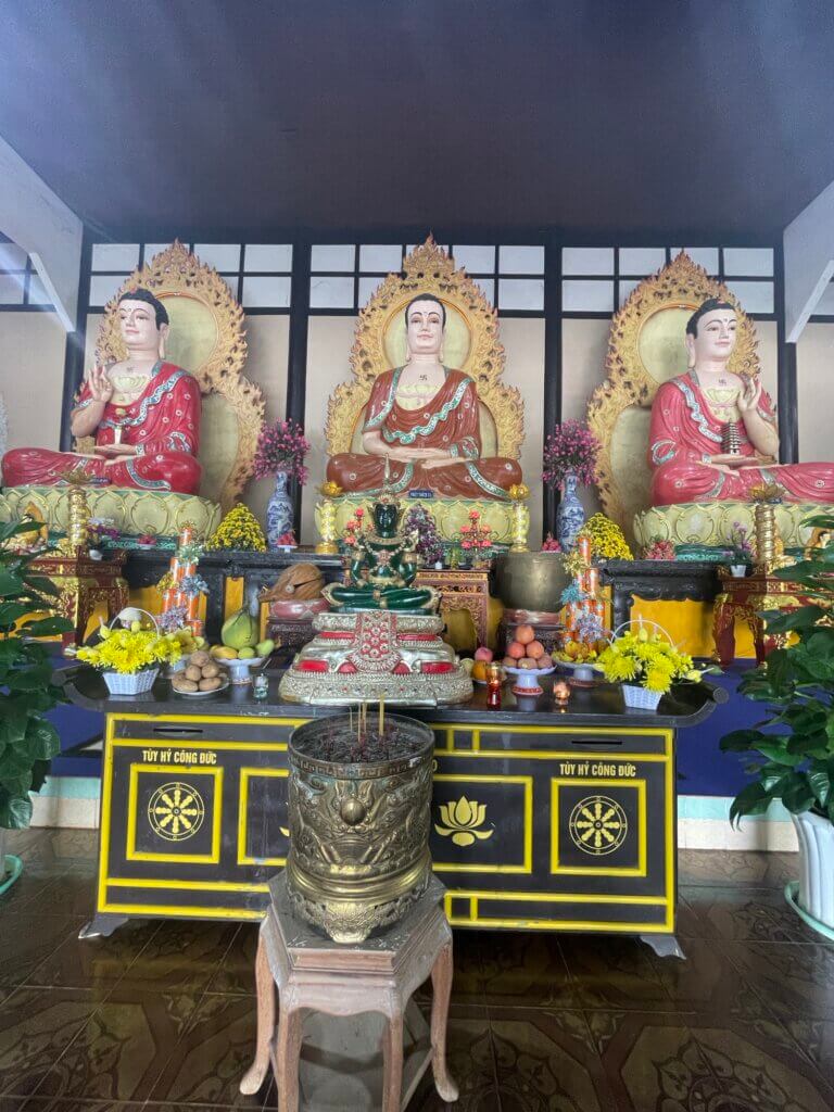 Na deze proeverij zijn we naar een pagoda gegaan, dit is een Boeddhistische tempel. We leerden hier ook meer over het geloof in Vietnam. De twee hoofdgeloven zijn het Boeddhisme en het Katholicisme.