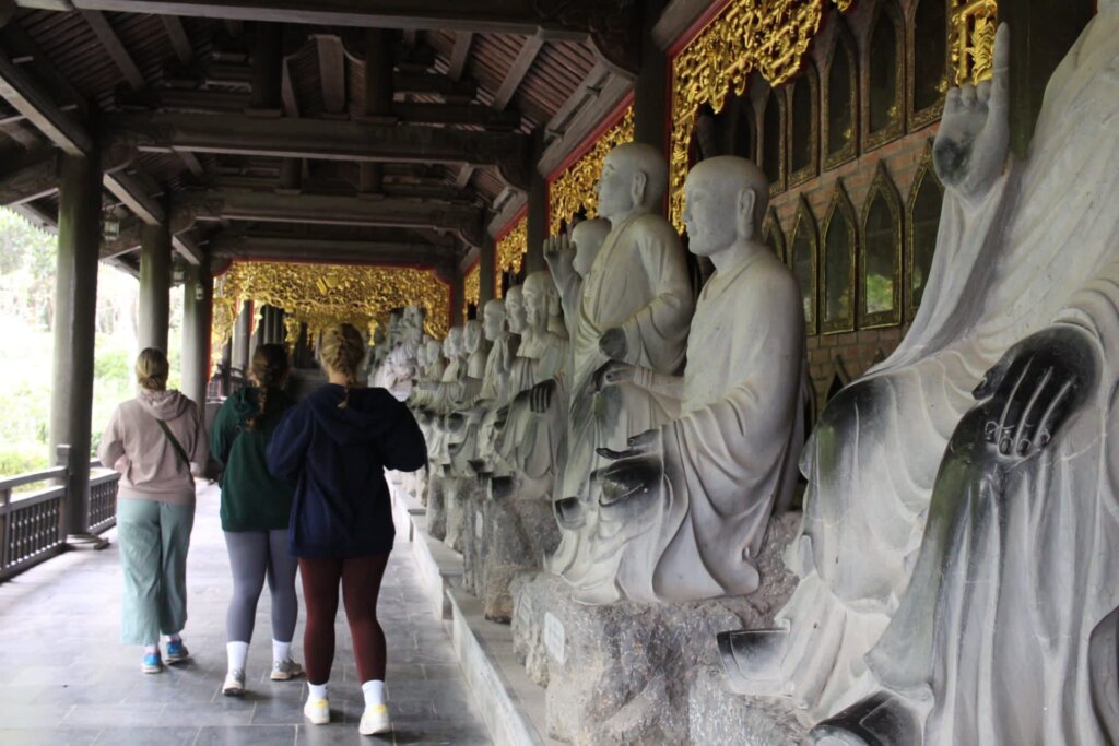 Op de laatste dag zijn we naar een groot tempel complex gereden met de scooter. Dit was een Boeddhistisch complex met tempels en grotten. De tempels waren super mooi, met veelal gouden Buddha’s en heel veel pracht en praal. Overal rook je wierook en lagen offers. Ook kwamen we erachter dat wierook stoken in een grot niet het fijnste is, het stond er namelijk helemaal blauw.