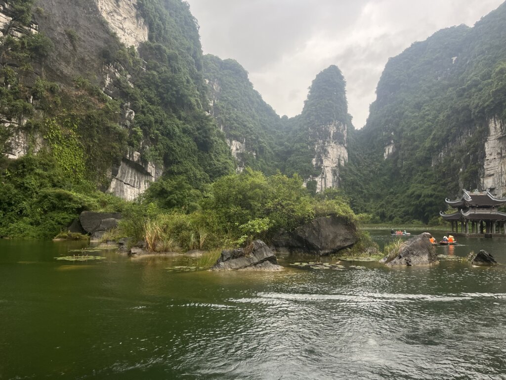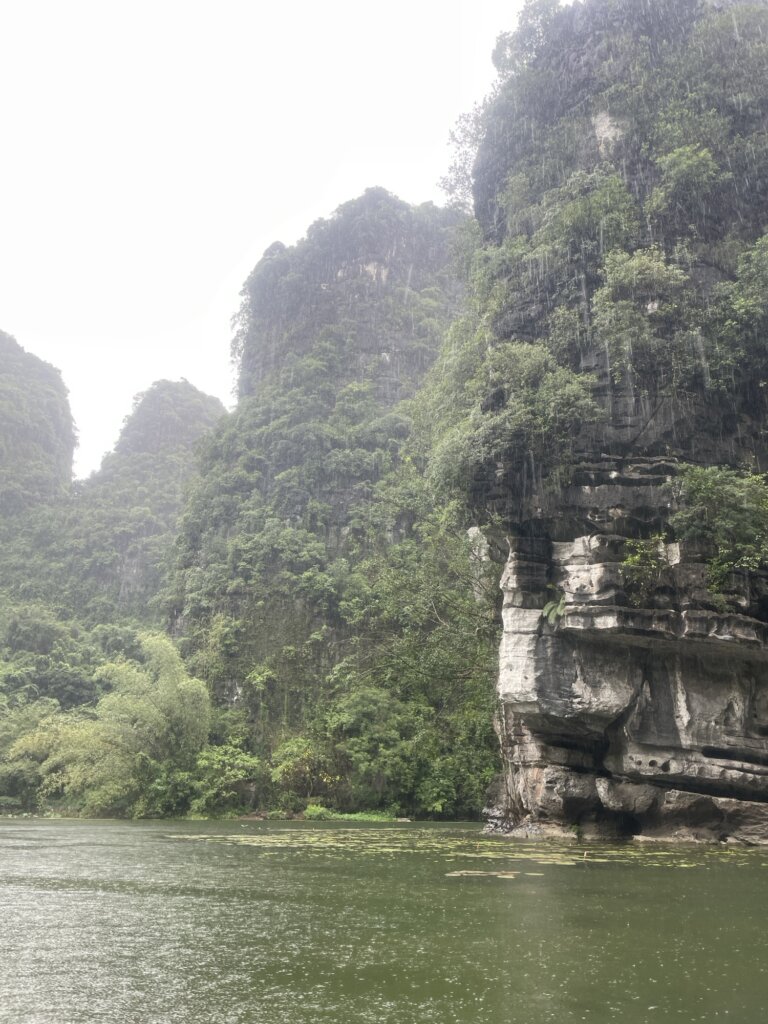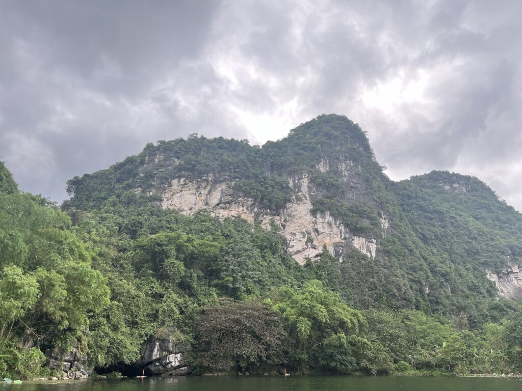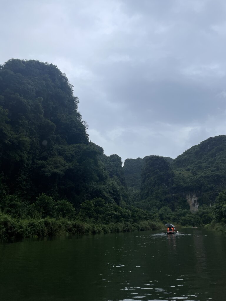 Op dag twee zijn we naar een national park gegaan waar we in een bootje zijn gegaan. Deze werd vooruit gepaddeld door een Vietnamese vrouw. Het was een super mooie omgeving waar we doorheen gingen en het was echt genieten van alle met groen bedekte bergen.