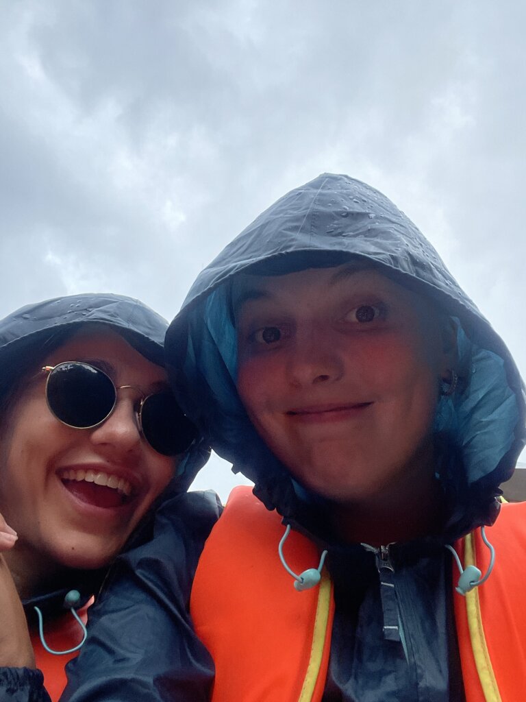 Helaas ging het op een gegeven moment heel hard regenen. Gelukkig kregen we een paraplu in de boot en hadden we onze regenjassen bij ons.